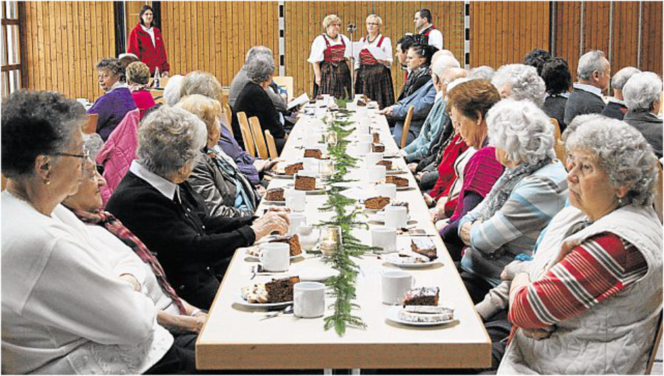 Friedenfels. (roh) Das BRK Friedenfels hatte die älteren Mitbürger zur Adventfeier in die Steinwaldhalle eingeladen. Nach einem musikalischen Willkommensgruß der Kemnather Sängerinnen freute sich Bereitschaftsleiterin Andrea Winkler über die gute Resonanz. "Schön, dass wir Sie ein par Stunden verwöhnen dürfen." Sie las die Geschichte der "Weihnachtsmaus" in Gedichtform. Bürgermeister Gottfried Härtl sinnierte über das "Abenteuer" Advent, nach einer Vorlage von Andrea Schwarz. Die adventliche Besinnung kehrte ein, als die Kemnather Sängerinnen, Monika Fink und Sieglinde Wick, begleitet von Roland Küffner auf dem Akkordeon, mit Gesang und eindringlichen Texten die biblischen Ereignisse bis zur Geburt Christi nachzeichneten. Die Grüße des BRK-Kreisverbands übermittelte stellvertretender Geschäftsführer Jürgen Sollfrank. Erwin Bächer dankte dem Roten Kreuz nicht nur in seiner Eigenschaft als Seniorenbeauftragter für die vielen Veranstaltungen für die Senioren.