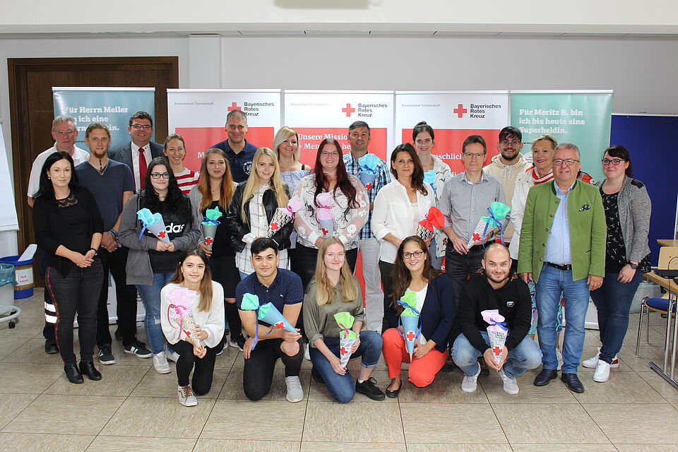 Tirschenreuth. 20 Auszubildende starten beim Kreisverband Tirschenreuth im Bayerischen Roten Kreuz (BRK) zum 1. September und 1. Oktober ihre Ausbildung in zukunftsorientierten Berufsfeldern des Gesundheits-, Sozial- und Rettungswesens. Der BRK Kreisverband Tirschenreuth mit rund 500 Mitarbeitern beweist sich damit unverändert als starker Ausbildungsbetrieb im Landkreis Tirschenreuth. Zum Start ins Berufsleben wurden die „Neuen“ von den stellvertretenden Kreisvorsitzenden Eva Freifrau von Podewils und Toni Dutz, sowie Kreisgeschäftsführer Holger Schedl persönlich begrüßt, bevor der abwechslungsreiche und informative Azubi-Starttag begann.