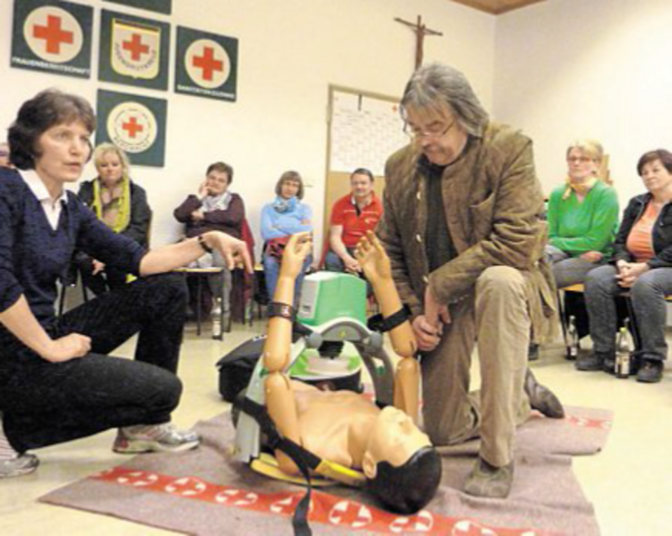 Zur Wiederbelebung wies die Referentin darauf hin, dass diese vor allem durch Laien oder Ersthelfer überlebenswichtig sei. "Daher prüfen, rufen, drücken! Bewusstsein und Atmung prüfen, Notruf unter der 112 rufen, 30 Mal drücken und zwei Mal beatmen."