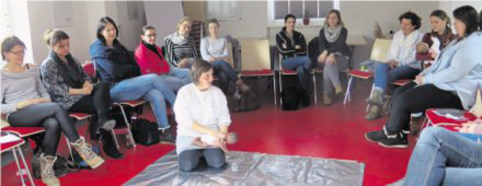 Kemnath. (jzk) Ausgebucht war der Workshop „Erste Hilfe am Kind“ im Rotkreuzheim. Jessika Wöhrl-Neuber vom Familienzentrum Mittendrin hatte ihn organisiert. Drei Stunden lang informierte BRK-Ausbilderin Miriam Schmid 14 Eltern über Verhaltensmaßnahmen, die für ihr Baby lebensrettend sein können.
