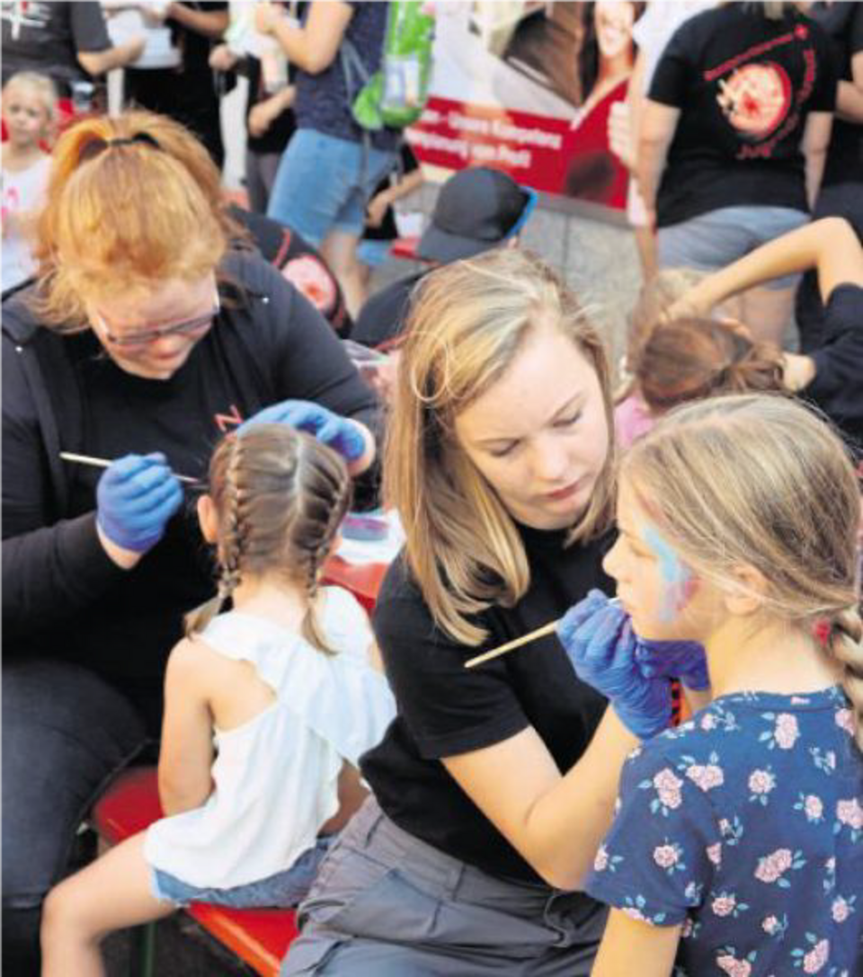„Prüfen – rufen – drücken.“ Unter diesem Motto zeigte die BRK-Bereitschaft Reanimierungsmöglichkeiten an einem Dummy auf. Den kleineren Gästen demonstrierte das Jugendrotkreuz, wie Verbände richtig angelegt werden und wie ein Notruf abgesetzt werden kann. Natürlich gab es auch das beliebte Kinderschminken.