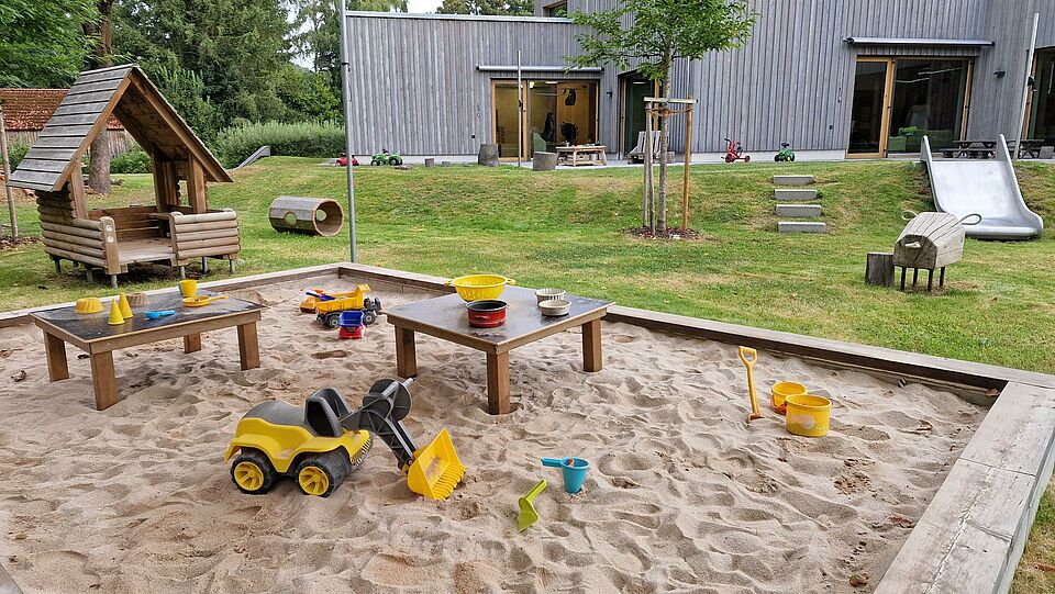 Eine Besonderheit in unserem Kinderhaus ist die Gartengruppe. Das Gelände schließt direkt an den Garten der Kindergartenkinder an, es gibt eine beheizbare Hütte mit einem großzügigen überdachten Terrassenbereich zum Schutz vor Wind und Sonne.