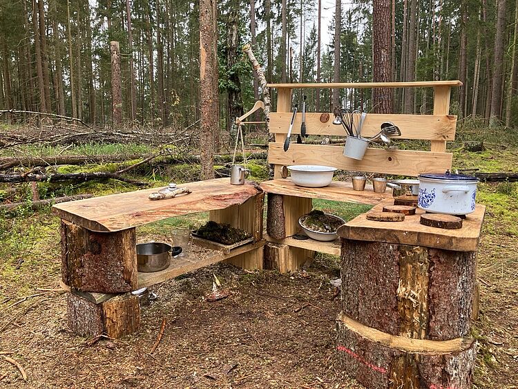 Erfahrungsgemäß ist allerdings der Naturraum „Wald“ mit seinen unerschöpflichen Anregungen für die Kinder meist viel interessanter und fördert zudem die Fantasie und Kreativität. Das freie Spielen ohne vorgefertigtes Spielzeug regt zum selbständigen Gestalten, Experimentieren und Erfinden an. Kinder brauchen nicht viel, um glücklich zu sein, nur Raum zum Entfalten, Verbundenheit mit anderen Kindern und die Aufmerksamkeit und den Rückhalt von Bezugspersonen.